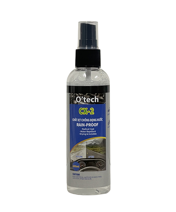 Chống bám nước kính ô tô O’tech CX-2 là sản phẩm hỗ trợ gạt nước mưa cho ô tô bằng cách tạo một lớp màng chống lại nước, sương, bụi bẩn…giúp cải thiện rõ ràng tầm nhìn khi lái xe trong điều kiện mưa và sương mù.
