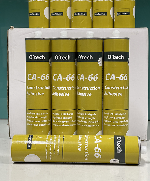 Keo dán đa năng O’tech CA-66 là loại keo dính các tấm vật liệu xây dựng, có thể gắn trên bề mặt thẳng đứng. CA-66 có thể sử dụng cho nhiều loại vật liệu khác nhau bao gồm PVC, gỗ, thạch cao, bê tông, gạch, vữa, nhôm, sắt mạ kẽm, tấm fibro xi măng và ván sàn. Keo cũng có thể sử dụng được cho xốp polystyrene và mặt sau của gương.